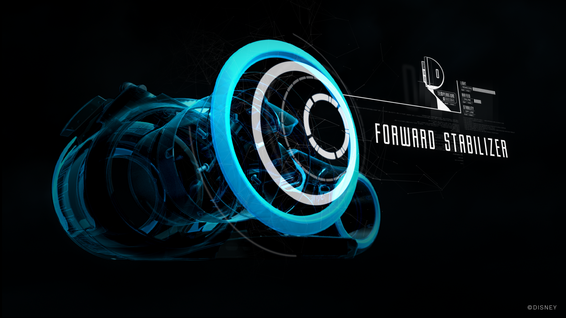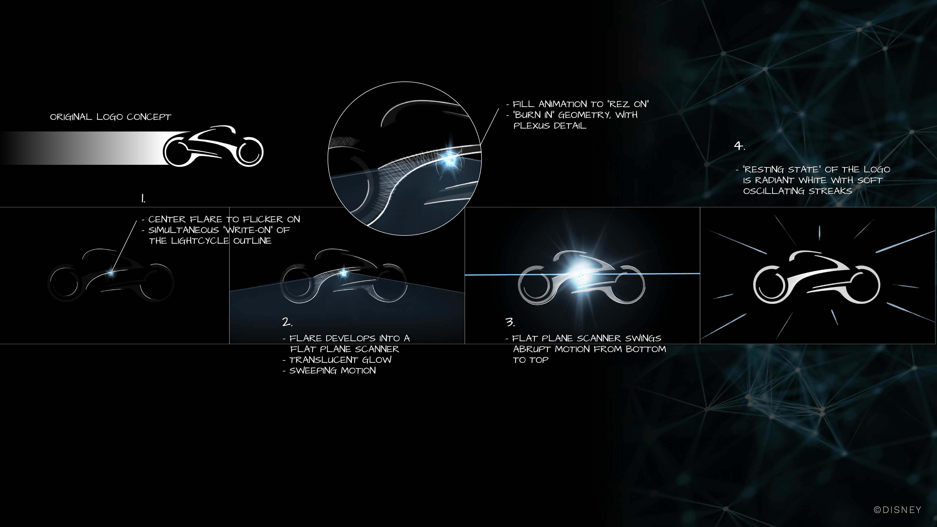 Utilize an existing vector logo shape and preliminary motion studies to develop the final design and motion for the TRON logo as well as supporting brand graphics to be projected within the vehicle loading room of the attraction.
